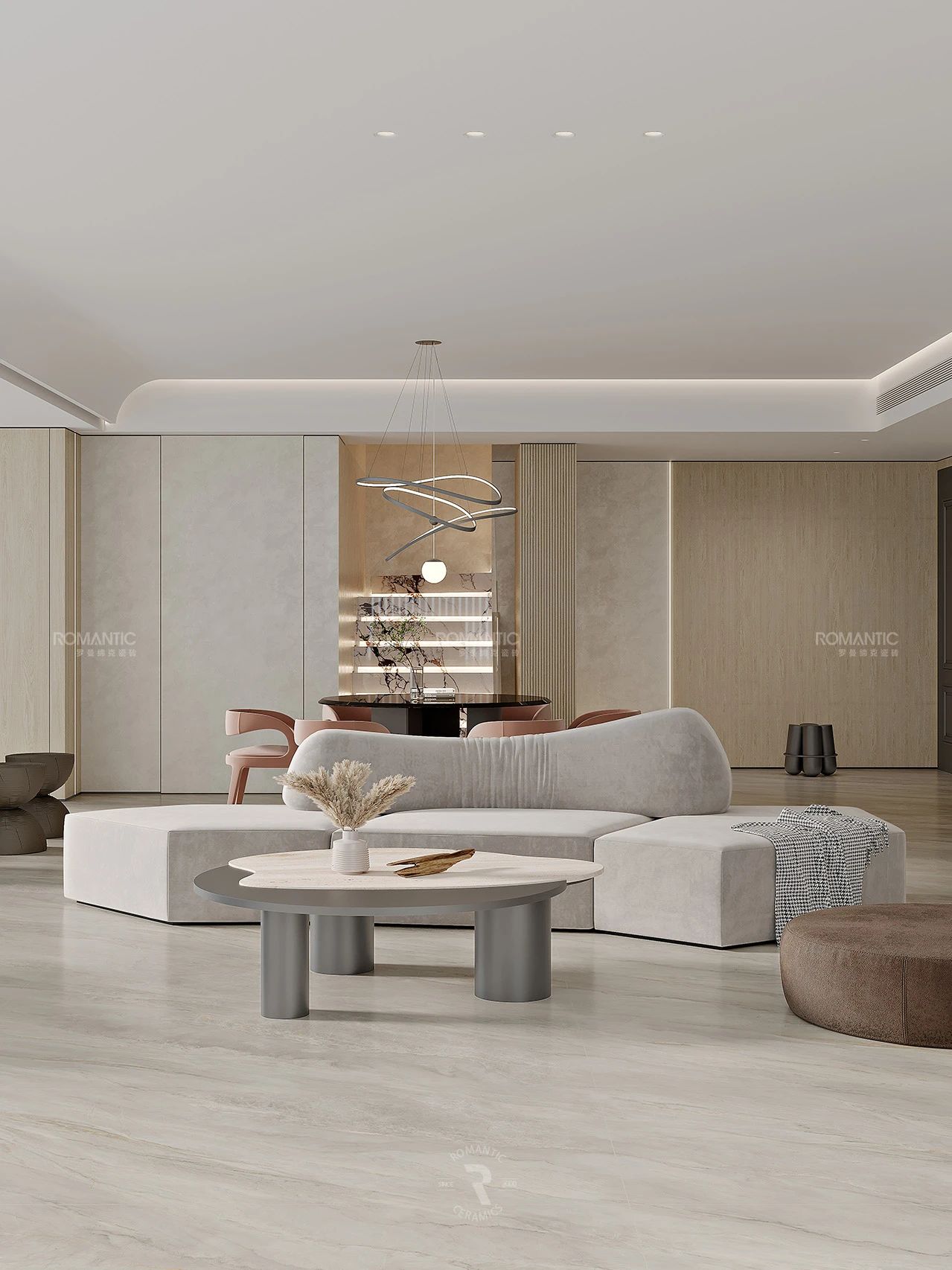 當冰冷的建材被賦予藝術的靈魂,羅曼締克瓷磚-山西長治旗艦店,以前沿的設計、豐富的選材、沉浸的體